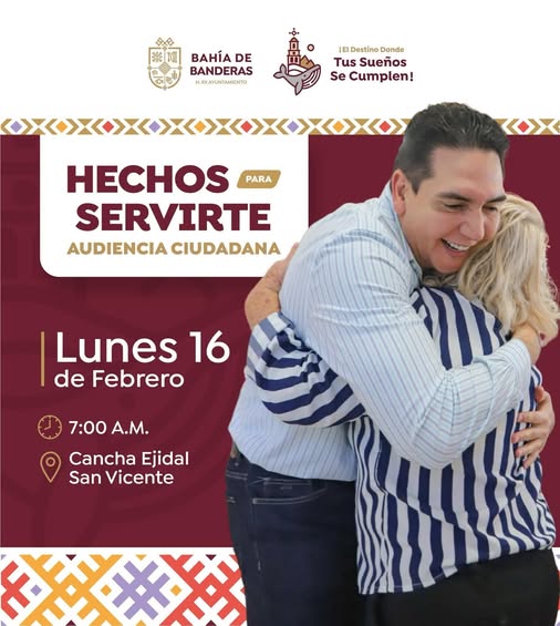 Con el firme objetivo de mantener un gobierno de proximidad y contacto directo, el presidente municipal de Bahía de Banderas, Héctor Santana, anunció que la próxima Audiencia Ciudadana se llevará a cabo en la delegación de San Vicente.